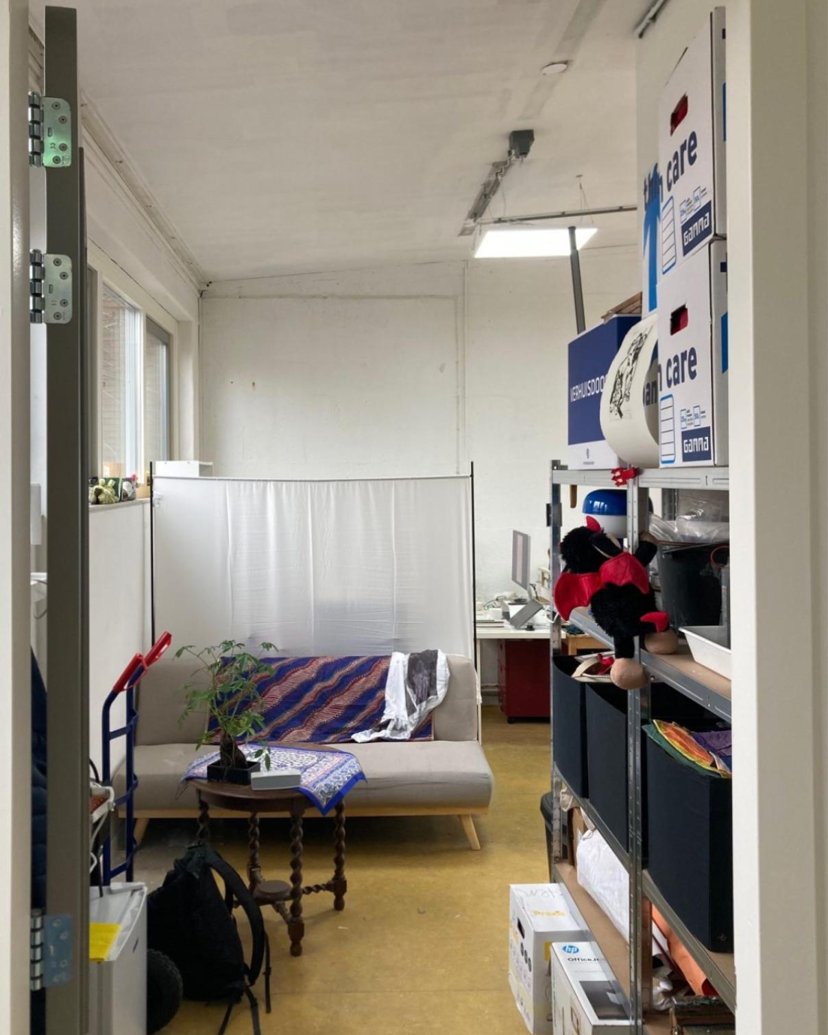 Oorspronkelijk betrof het één groot klaslokaal, maar de ruimte is inmiddels opgesplitst met een hoge gipswand. Daardoor is de werkruimte minder geschikt voor activiteiten waarbij veel geluid wordt geproduceerd.