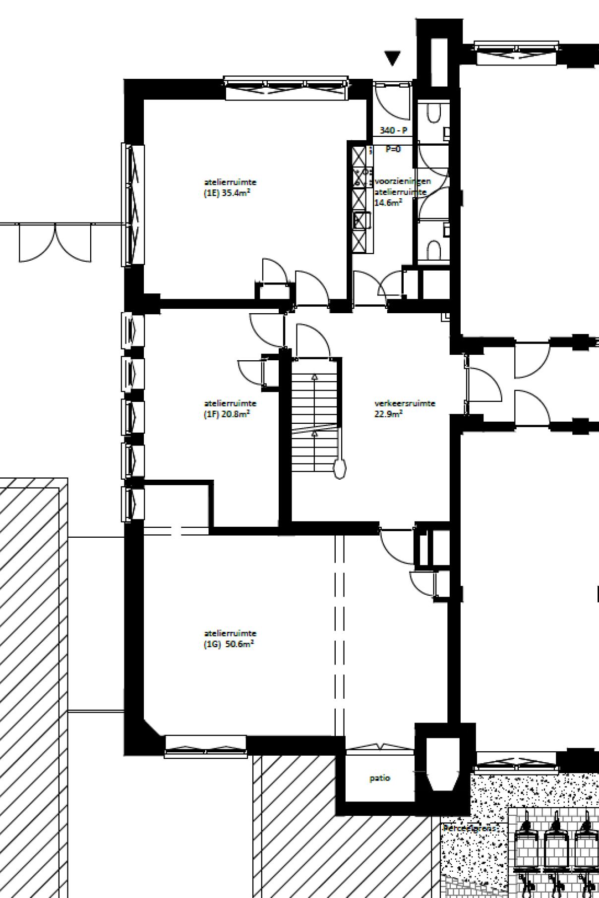 De drie ateliers hebben een eigen ingang.