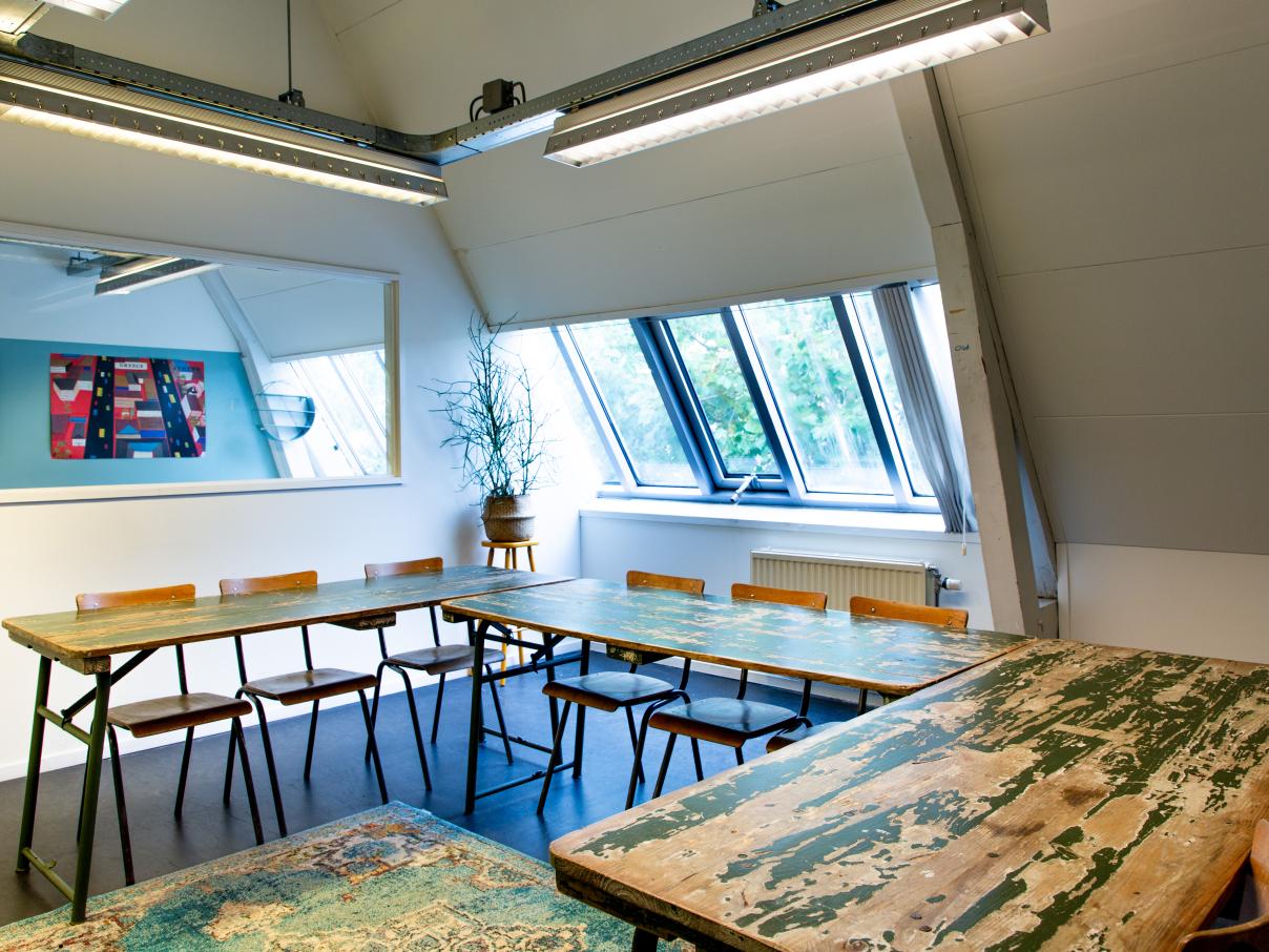 Op de tweede verdieping van het monumentale pand aan de Gerard Doustraat, zijn er drie middelgrote ruimtes te huur. Ideaal voor een off-site vergadering of een workshop. De lichte ruimtes zijn voorzien van whiteboards en markers, beamer of scherm en stoelen en tafels.