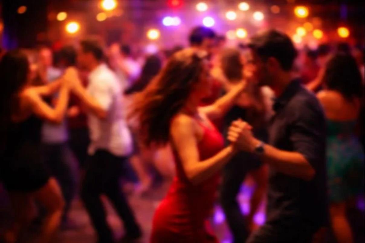 Een gladde vloer geschikt voor dans (parquet, hout of vergelijkbaar), bruikbaar met verschillende soorten schoenen (zwarte zolen, danshakken)